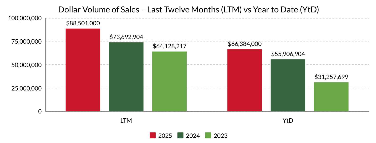 Despite the slower pace, overall dollar volume climbed to $11.46M, a 13% gain year-over-year, and year-to-date sales