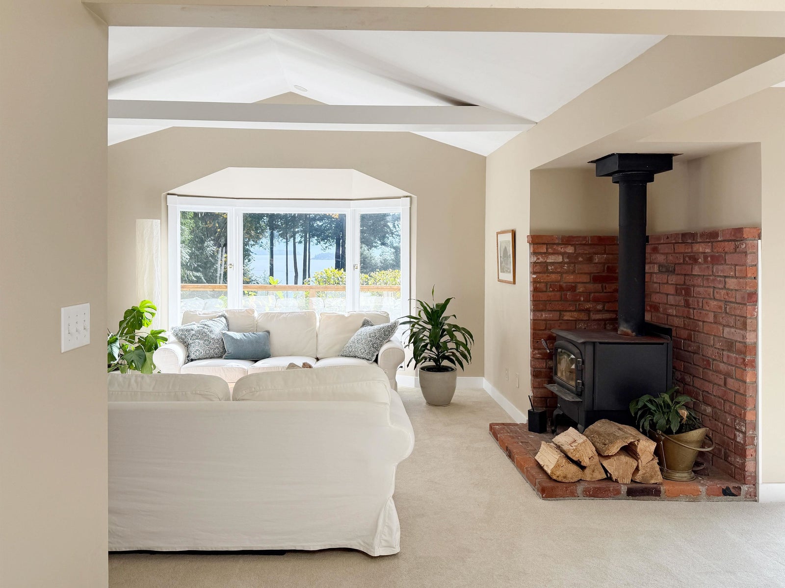 Tucked in quiet Miller’s Landing, this 4-bedroom, 3-bath home captures the essence of Bowen living—calm, charming, and full of light. The spacious kitchen and bright family area, anchored by a vintage wood stove, open to a sunny deck with a south-facing ocean view—perfect for those long summer evenings. The living and dining area frame the view toward Spanish Banks, while a wood-burning fireplace promises cozy winter afternoons. Upstairs, restful bedrooms invite morning light and peace. Outside, a fenced garden shelters fruit trees, and a rustic workshop offers space to create and breathe. Set on nearly half an acre, this 2,090 sq. ft. home blends timeless charm with easy functionality—a place to live simply, beautifully, and well.